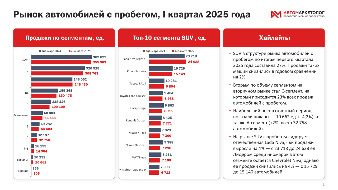 Всего за первый квартал 2025 года в сегменте SUV с пробегом было продано:
