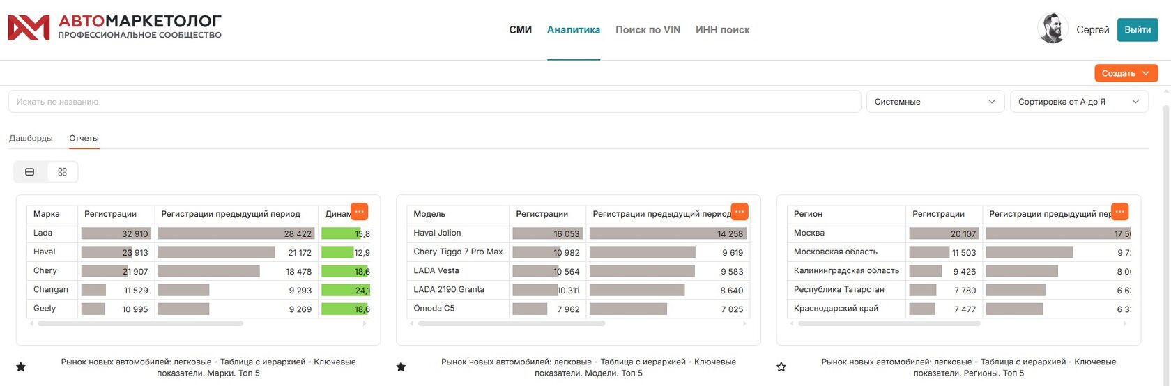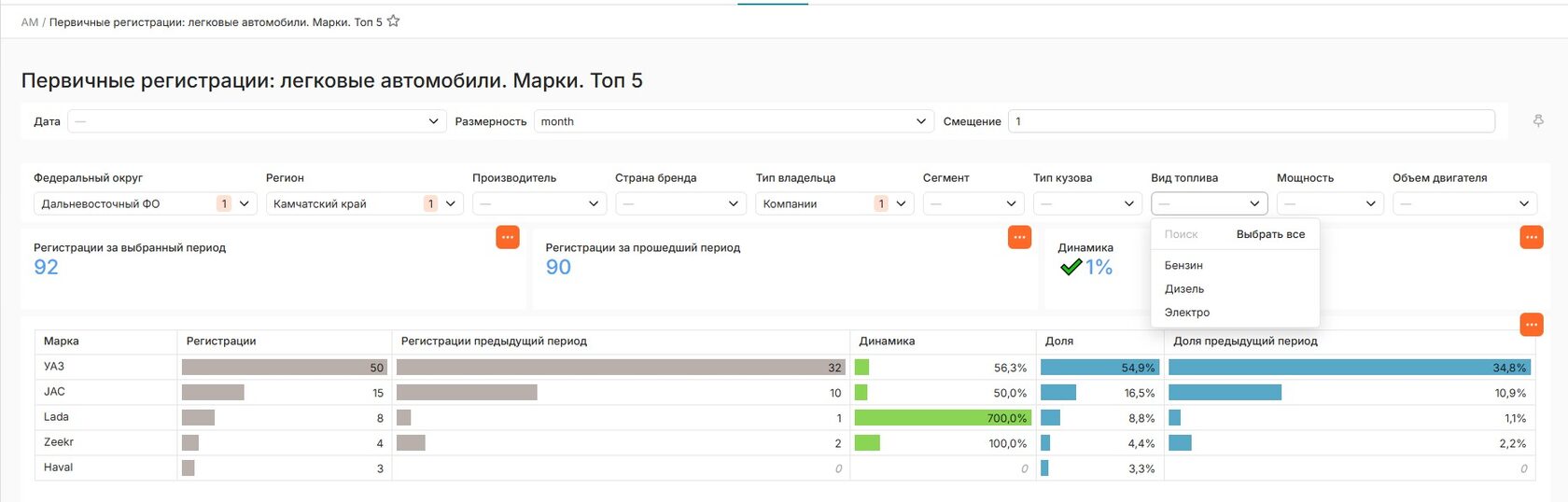 | | «Автомаркетолог» сделал удобную платформу для автобизнеса. Там как раз обновились данные, теперь доступна актуальная статистика по сентябрю, по всем регионам. Приходите, подключайте демо, запрашивайте доступ (подробности ниже)! | | | | | Если простыми словами, то это веб-платформа, в которой собрана самая свежая, структурированная и визуализированная статистика по автомобильному рынку России — от регистраций новых авто до структуры автопарка и вторичного рынка, с возможностью срезов по регионам, брендам, моделям, клиентским сегментам и другим параметрам. Все данные, разумеется, из официальных источников. | | | | | Чем удобно? | | 🔹 Все данные в одном месте, не нужно возиться с экселевскими табличками. 🔹 Удобный интерфейс: интерактивные графики, экспорт таблиц в нужном формате, поиск и фильтры. 🔹 Можно формировать отчёты так, как вам удобно. 🔹 Как только данные обновились, они сразу моментально приходят на платформу и уже у вас. 🔹 Никакой устаревшей информации — показываем актуальность данных каждого отчёта. 🔹 Каждый день добавляем новые фишечки, например, скоро встроим поиск по VIN и ИНН. | | | | | А ещё там есть вот такие удобные дашборды, где можно настроить каждую мелочь и получить просто прицельно точную выборку по любому запросу. | | | | А главное, ничего не теряете | | Попробовать платформу можно бесплатно. В бесплатной версии (понятное дело) меньше данных, зато можно всё попробовать, разобраться.