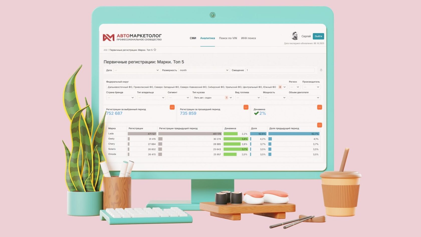 | | На аналитической платформе «Автомаркетолога» для автобизнеса обновились данные. Приходите, подключайте демо, запрашивайте доступ (подробности (и классная скидка) ниже)! | | | | | Ещё не знаете о платформе? | | Если простыми словами, то это веб-платформа, в которой собрана самая свежая, структурированная и визуализированная статистика по автомобильному рынку России — от регистраций новых авто до структуры автопарка и вторичного рынка, с возможностью формирования любых срезов. | | | | Чем удобно? | | 🔹 Все данные в одном месте, не нужно возиться с экселевскими табличками. 🔹 Удобный интерфейс: интерактивные графики, экспорт таблиц в нужном формате, поиск и фильтры. 🔹 Можно формировать отчёты так, как вам удобно. 🔹 Как только данные обновились, они сразу моментально приходят на платформу и уже у вас. 🔹 Никакой устаревшей информации — показываем актуальность данных каждого отчёта. | | | | А главное, ничего не теряете | | Попробовать платформу можно бесплатно. В бесплатной версии (понятное дело) меньше данных, зато можно всё попробовать, разобраться.